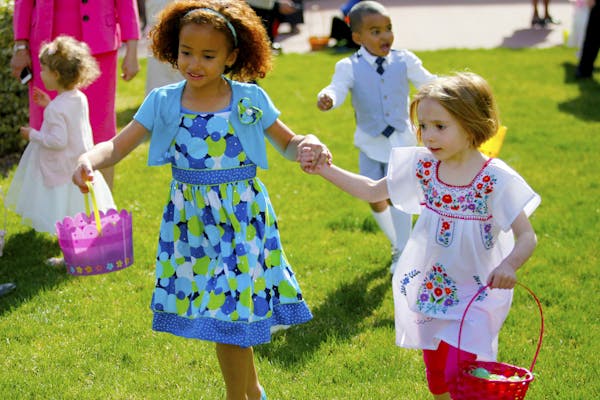 Children on an egg hunt. Susan Bassett, CC BY-NC-ND