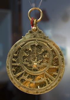 By measuring the height of celestial objects with an astrolabe, a user could predict the position of stars, planets and the sun. Pom², CC BY-SA