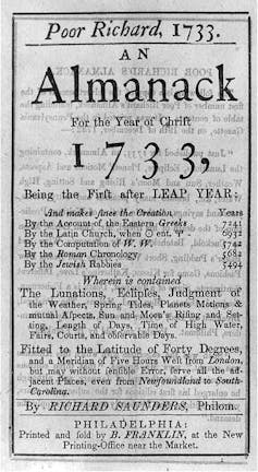 In addition to the usual fare, Franklin’s almanac provided stories, aphorisms and poems, all ostensibly curated by a homespun character he created: Richard Saunders, the fictional “author” of Franklin’s “Poor Richard’s Almanac.”