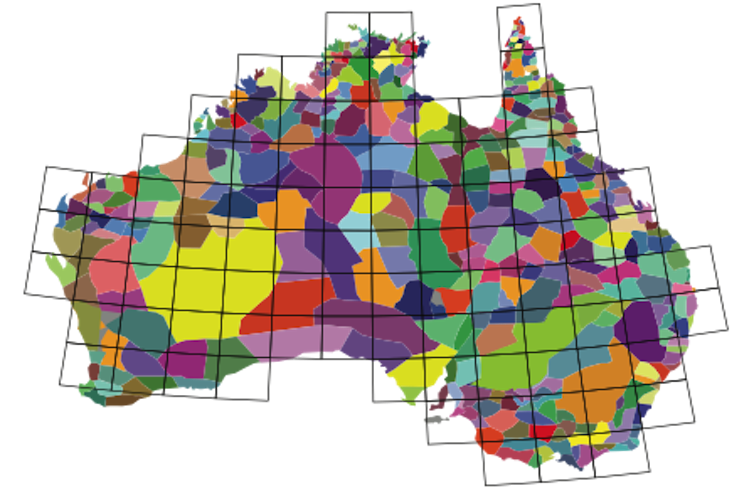 We used this model to simulate language diversity maps for Australia. In each iteration, an initial population sprung up randomly somewhere on the map and began to grow and spread in a random direction. An underlying rainfall map determined the population density, and when the population size hit the predetermined maximum, the group divided. In this way, the simulated human populations grew and divided as they spread to fill up the entire Australian continent.