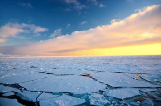 A large part of the explanation relates to sea ice. This is a thin layer (typically one meter to five meters thick) of sea water that freezes in Winter and partially melts in the Summer.