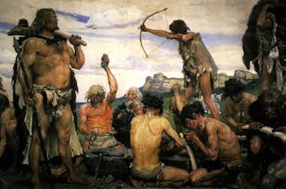 Multiple types of archaeological artifacts unambiguously associated with prefrontal synthesis appear simultaneously around 65,000 years ago in multiple geographical locations. This abrupt change in imagination has been characterized by historian Yuval Harari as the “cognitive revolution.” Notably, it approximately coincides with the largest Homo sapiens‘ migration out of Africa.