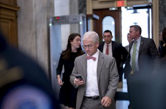 Jim Jordan, center, has been working feverishly to line up support for his speakership. AP Photo/J. Scott Applewhite