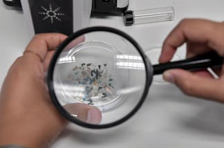 The most common microplastics in the environment are microfibers – plastic fragments shaped like tiny threads or filaments. Microfibers come from many sources, including cigarette butts, fishing nets and ropes, but the biggest source is synthetic fabrics, which constantly shed them.