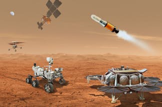 The rocks themselves also preserve chemical information that indicates some of the major events on Mars happened early in its history. Mars formed quite rapidly, 4.5 billion years ago, from gas and dust that made up the early solar system. Then, very soon after formation, its interior separated out into a metallic core and a solid rocky mantle and crust.