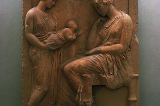 Prince Siddhartha with his foster mother Mahaprajapati. A 1910 painting by Maligawage Sarlis. Photo by MediaJet, 2009 via Wikimedia Commons