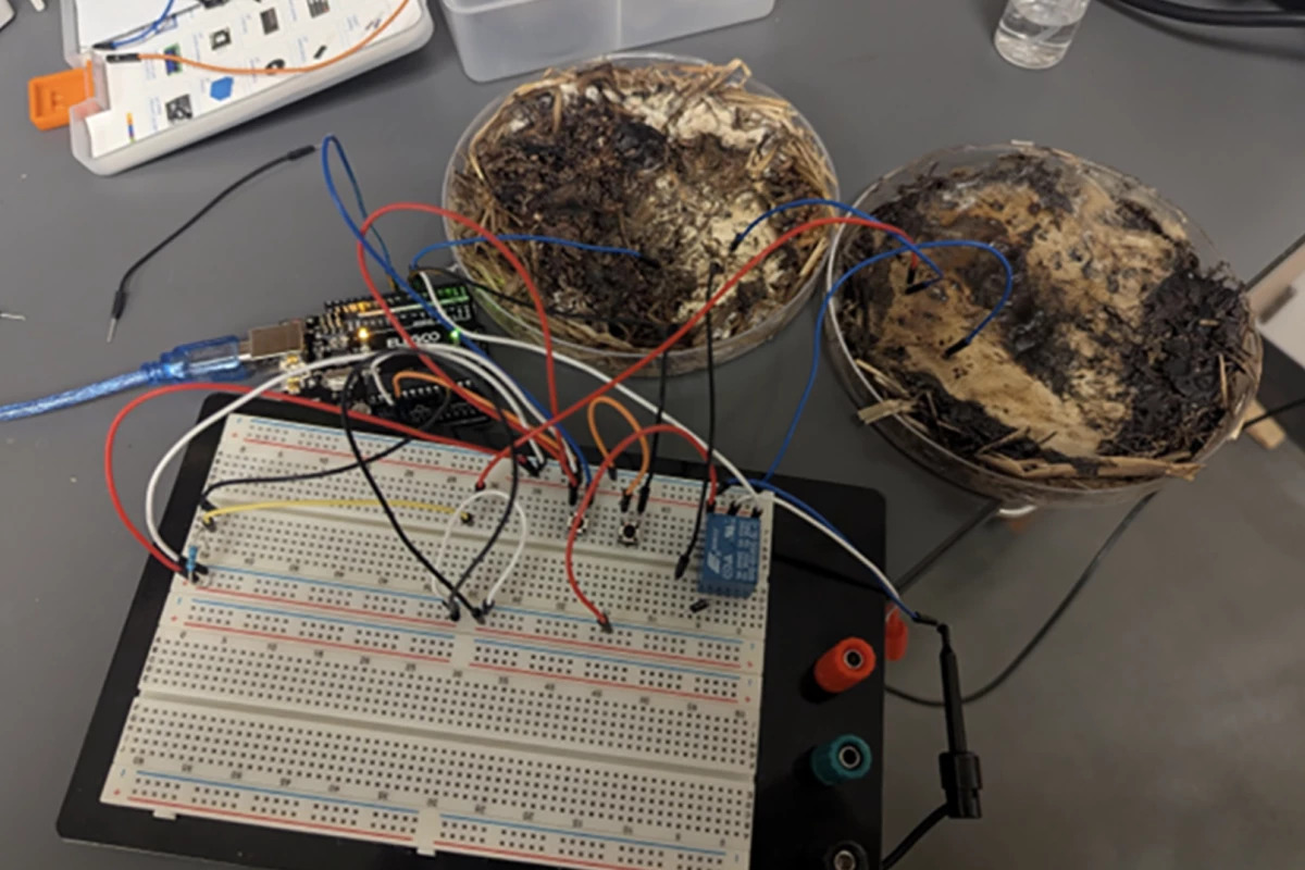The researchers cultivated shiitake and button mushrooms on an organic substrate in Petri dishes until the sample was covered with a dense mycelial mat. These mats were then dehydrated and connected to electronic circuits. When voltages were applied – from 10 Hz to 5,850 Hz – the mushroom circuits began to behave like organic memristors.