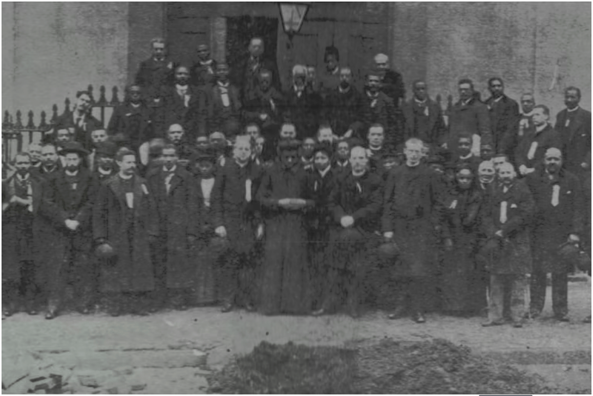 Attendees at the 1892 Colored Catholic Congress included the nation’s first openly Black priest, Augustus Tolton, who stands in the middle of the front row. Wikimedia Commons
