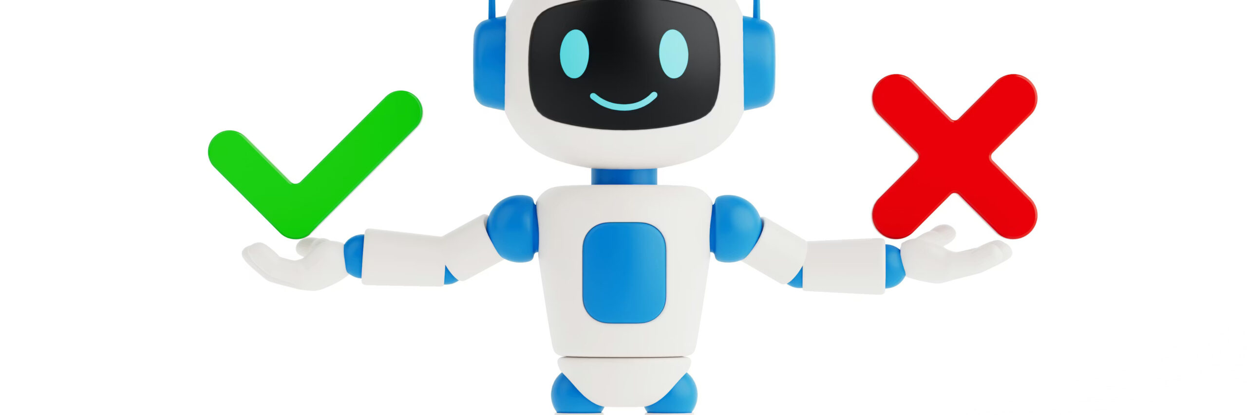 Two wooden cubes marked yes and no with robot hand pointing to no
