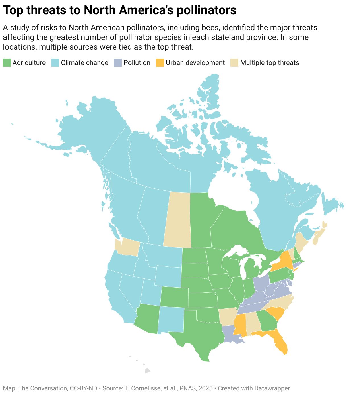 Half of all honey bee colonies die every winter in the United States, on average. Commercial beekeepers experienced their highest losses on record – more than 60% of their colonies – in the winter of 2024-25. Overall, one-fifth of pollinators in North America are considered to be at risk for extinction due in large part to habitat loss, rising temperatures, extreme weather, diseases and pesticides.